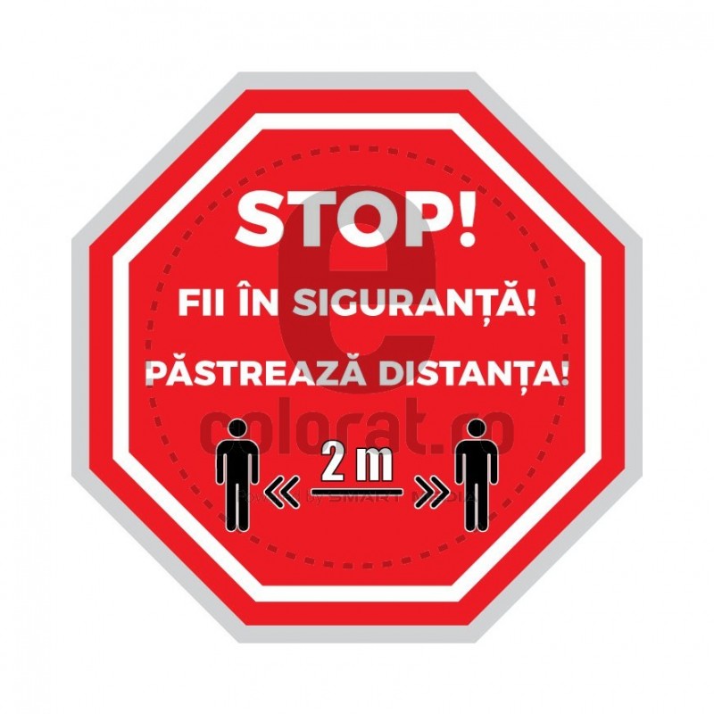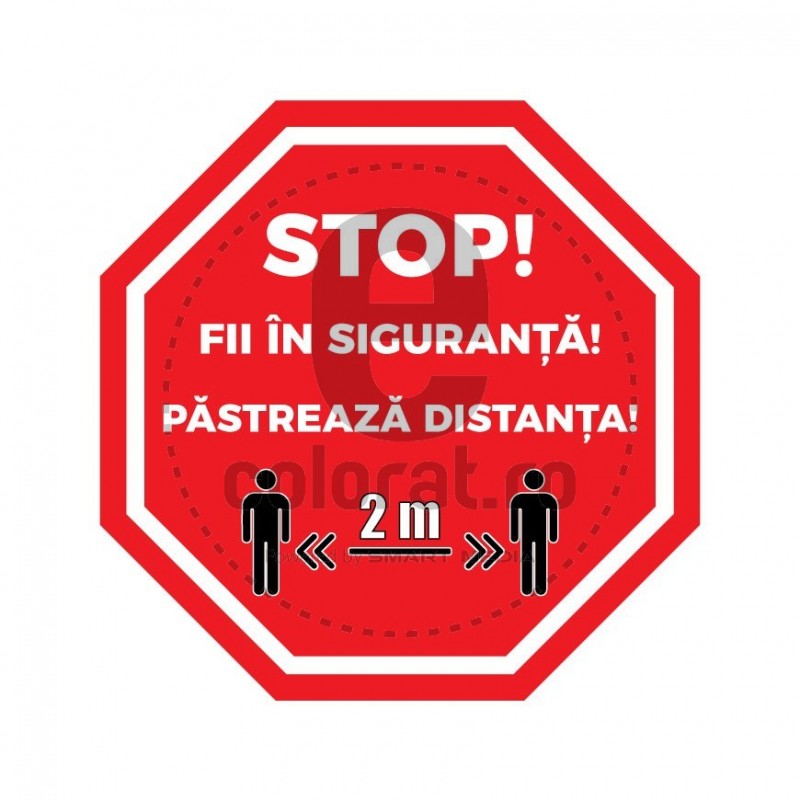Mesaj: "Stop! Fii In Siguranta! Pastreaza Distanta! 2 m"