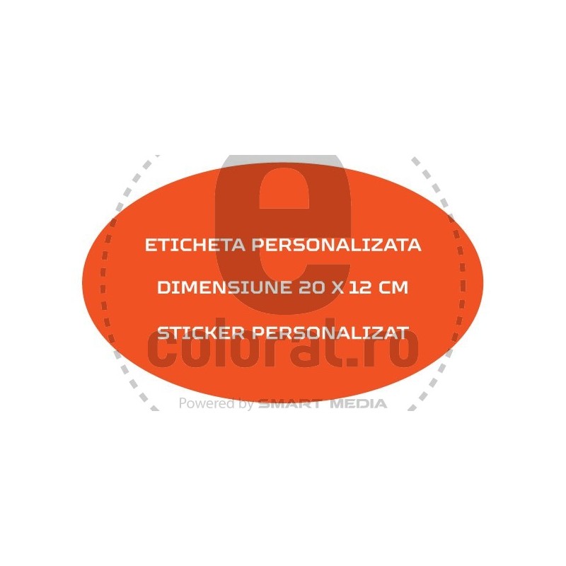 Eticheta de mici dimensiuni imprimata pe suport autocolant vinyl (20 cm x 12 cm)