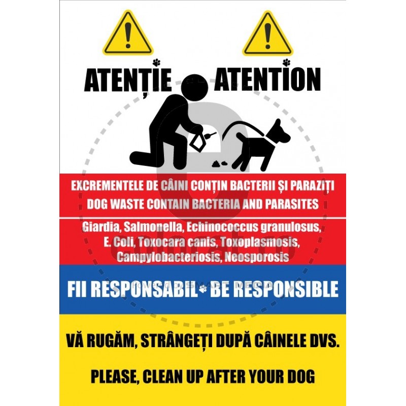 Mesaj: "Semn Bilingv Fii Responsabil Va Rugam Clean Up After Your Dog"