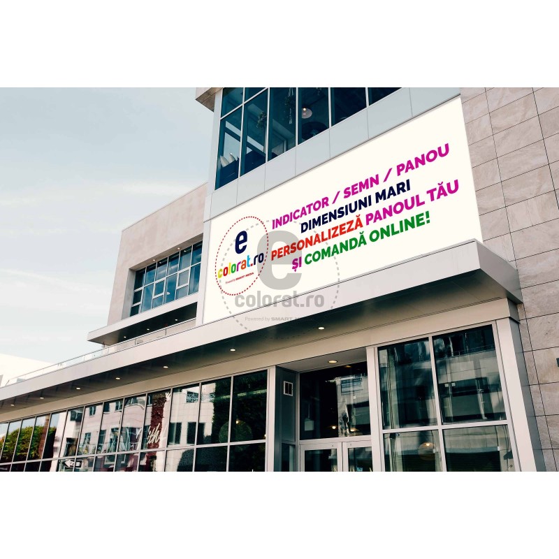 Indicator, semn sau panou personalizat, imprimat pe suport autocolant vinyl si aplicat pe placa PVC (5 mm) sau dibond 3 mm (metalic, din aluminiu)