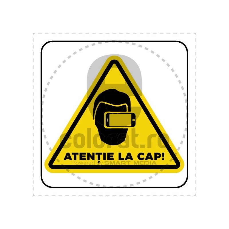 Indicator de securitate de avertizare imprimat pe suport autocolant vinyl si aplicat pe placa PVC (3 mm, 5 mm).