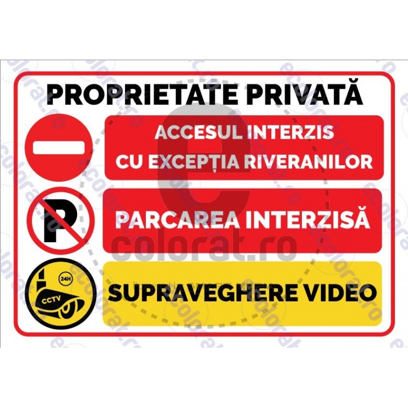 Mesaj: "Proprietate Privata Acces Interzis Parcare Interzisa Supraveghere Video"