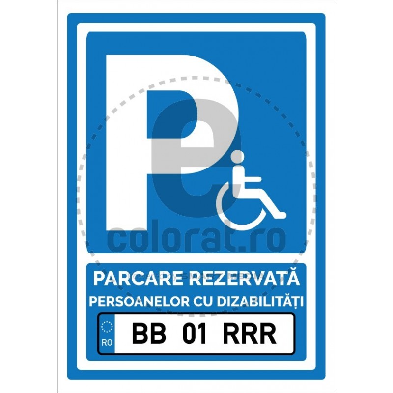 Mesaj: "Parcare Rezervata Persoane cu Dizabilitati + Numar Inmatriculare"