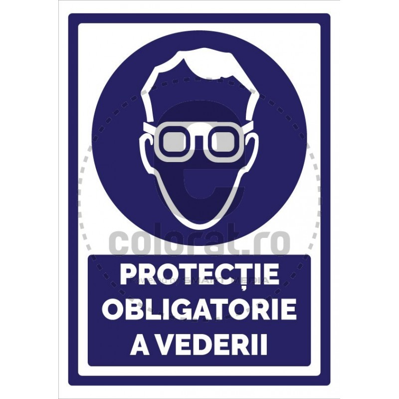 Indicator de securitate de obligativitate imprimat pe suport autocolant vinyl si aplicat pe placa PVC (de 1 mm, 3 mm, 5 mm) sau dibond 3 mm (metalic, din aluminiu)