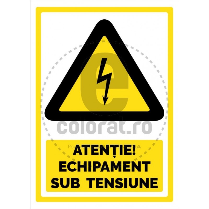 Indicator de securitate de avertizare imprimat pe suport autocolant vinyl si aplicat pe placa PVC (de 1 mm, 3 mm, 5 mm) sau dibond 3 mm (metalic, din aluminiu)